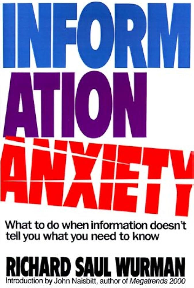 Aunque quizá sea café para los muy cafeteros, tirando del hilo del jardín digital y de cómo sobrevivir en la era de la sobreinformación, no puedo no mencionar a Richard Saul Wurman y su libro Information Anxiety: un libro que plantea cuestiones muy interesantes sobre lo que podría llamarse la “gestión del conocimiento“, pero desde un marco no tan convencional, el del diseño.